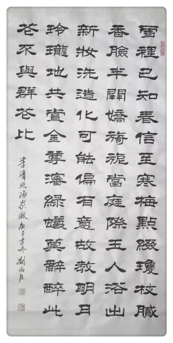 刘丙臣,男,1956年生于北京市石景山区,号玺英。自幼喜欢习练各种书法,主攻隶书。习书法50个春秋,先习颜真卿多宝塔,勤礼碑,后转隶书曹全碑礼器碑再及二王。