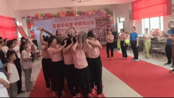 活动近尾声,“托举”环节突然响起掌声——师生们合力把学校二代传人翟琳娜校长高高举起。她的母亲,60多岁的刘艳校长站在一旁,望着女儿被众人托起的身影,眼里闪着泪光。正是这位创始人,当年倾尽多年积蓄、自筹资金,在这片土地上建起了这所特殊的校园。