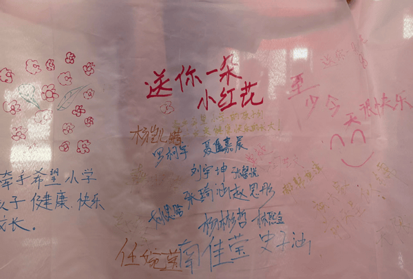实践团成员也拿起笔,写下 “愿你像星星,永远亮晶晶”。稚嫩的笔触和工整的字迹在画布上相遇,成了最动人的拼图。