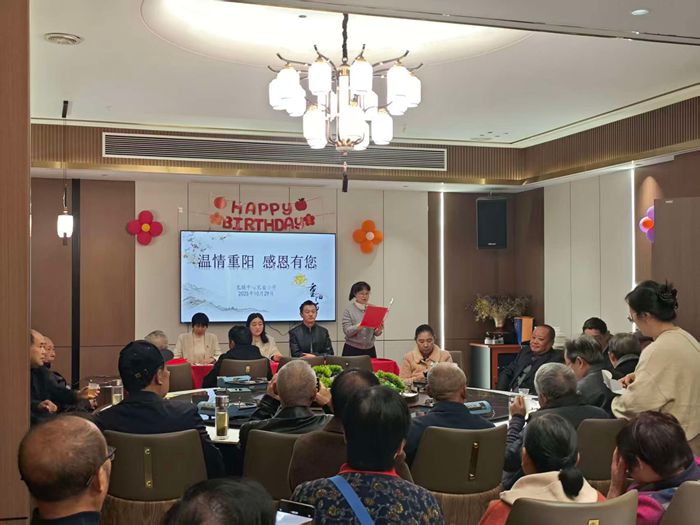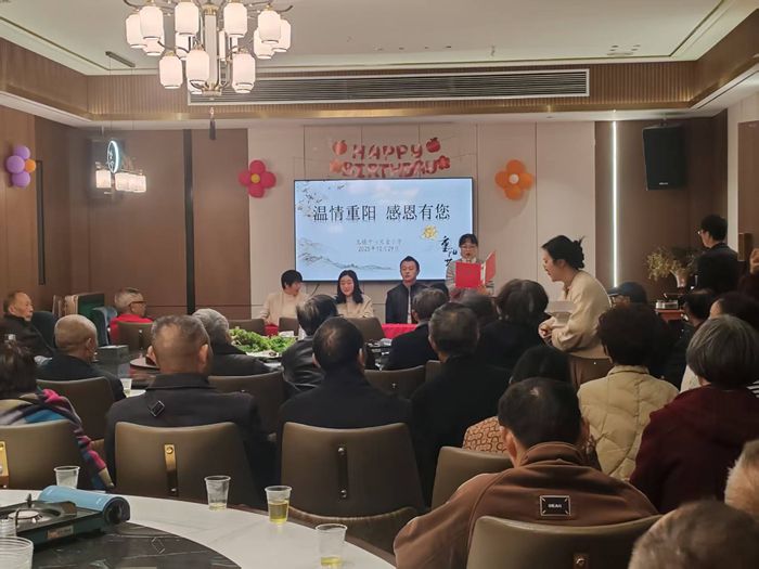 活动现场暖意融融,校长金瑾发表致辞,向退休教师们致以节日的问候和美好的祝福。她深情回顾了老师们为学校发展倾注的心血与汗水,感谢他们多年来为教育事业默默耕耘、无私奉献。何可非校长详细介绍了学校近年来的发展成就与未来规划,让老教师们深切感受到学校的牵挂与敬意。